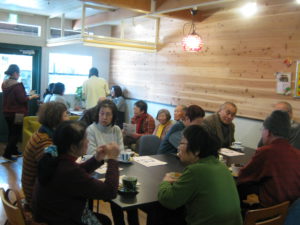 平成30年1月24日(水)家族サロンを開催し、区内の認知症カフェ「cafe Roots」にて、 カフェ職員さんより「そもそも認知症カフェとは?」というテーマでミニ講座を行って頂きました。みなさん真剣な様子でお話しに耳を傾け、中には認知症カフェに興味を持たれ、近隣のカフェを利用してみたいとお話しされる方いました。ミニ講座後は、コーヒーや菓子を楽しみながら交流会を行い、普段と違う雰囲気の中で、参加者同士のご交流を深める良い機会になった思います。