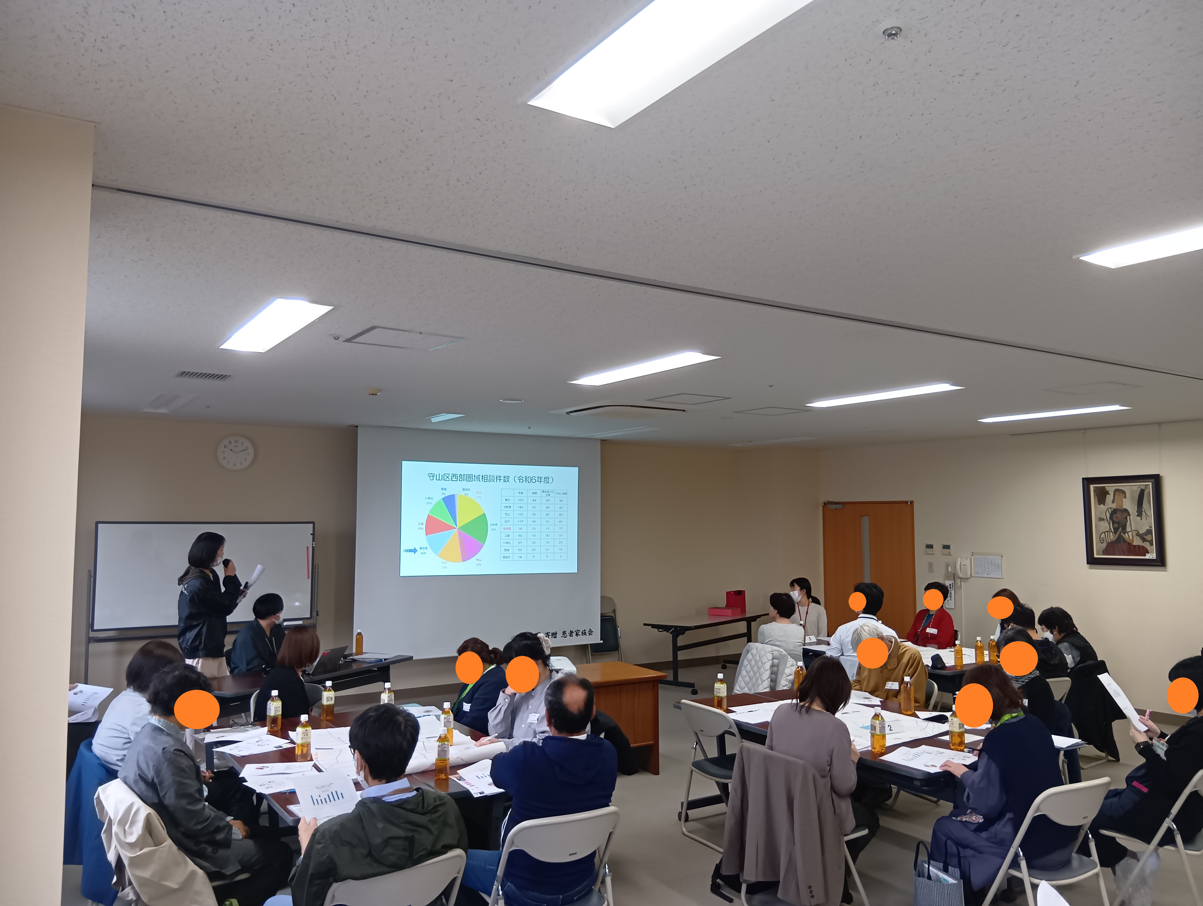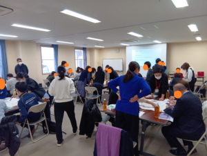 鳥羽見学区に関わる支援者同士の顔が見える関係づくりの促進を目的に、民生委員、ケアマネジャー、保健センター、介護保険事業所、社会福祉協議会、基幹障害支援センター、障害作業所、守山図書館、生涯学習センターの方など、32名の方にご参加いただきました。